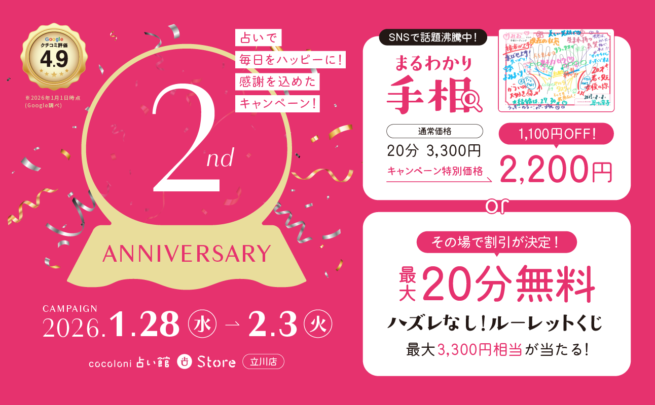 楽しくてためになる無料占いメディア「cocoloni占い館 Sun」や占いを無料で楽しめる無料占いポータル「占いCOLLECTION」、幅広く占いを扱うWEBメディア「占いTVニュース」を運営しています。手軽に占えるコンテンツや、恋愛に関わる各種記事を公開、制作しています。