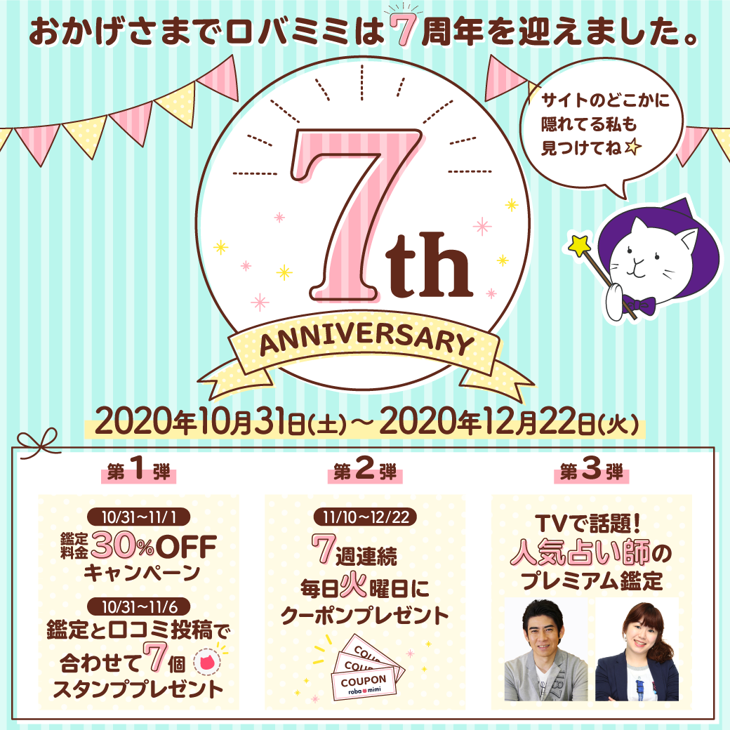 テレビで話題のシウマ登場!電話占い『ロバミミ』7周年キャンペーン開催!人気占い師に直接占ってもらえるプレミアム鑑定を含む3大キャンペーン!