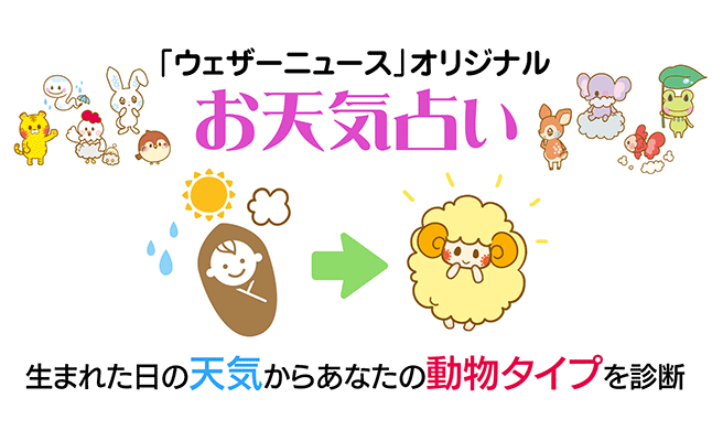 “占い”と“お天気”が初コラボ!業界最大手の株式会社ウェザーニューズが運営するウェザーニュースアプリにて天気要素を取り入れたオリジナル占い『お天気占い』を監修!〜生まれた日の天気から全36 種類の動物タイプに診断、“天気連動型”の新しい占い〜