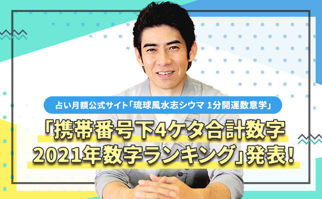 シウマの『携帯番号下4ケタ合計数字 2021年数字ランキング』発表!「突然ですが占ってもいいですか?」(フジテレビ系)で話題になった「携帯番号下4ケタ合計数占い」でランキング!あなたの数字は何位!?~占い月額公式サイト「琉球風水志シウマ 1分開運数意学」~