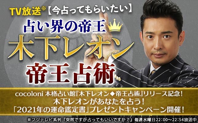 木下レオン先生監修コンテンツの提供開始!「突然ですが占ってもいいですか?」(フジテレビ系)でおなじみの木下レオン先生の鑑定をデジタルコンテンツで!あなたの運命鑑定書が当たるキャンペーンも開催!~『【今占ってもらいたい】占い界の帝王♦木下レオン/帝王占術』~