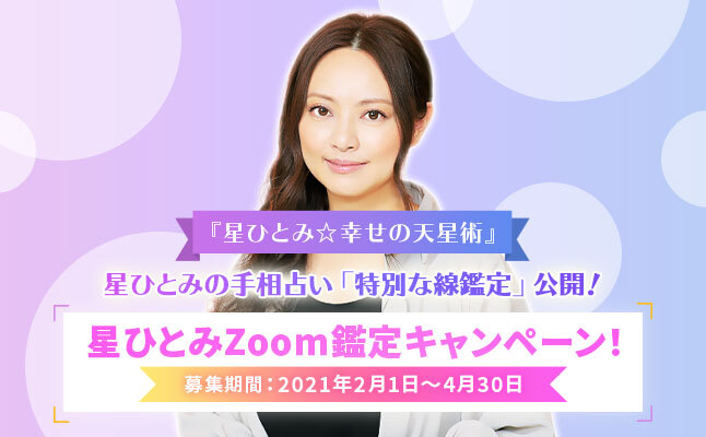 「突然ですが占ってもいいですか?」(フジテレビ系)で話題の星ひとみが監修する占い月額公式サイト『星ひとみ☆幸せの天星術』にて星ひとみに直接占ってもらえる「星ひとみZoom鑑定プレゼントキャンペーン」を開催